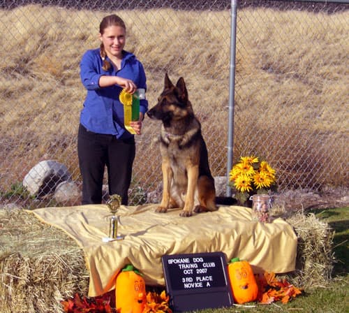 Jake won the Highest Scoring German Shepherd Award, Spokane Dog Training Club, October 6, 2007