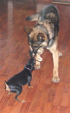 INTERNATIONAL CHAMPION JAKE VOM KANAS CD, BH, JJ-N, RN, 2007 4H OBEDIENCE CHAMPION H.O.T. Handler owned, trained, and titled, combines the DDR look of his sire, Dagger, grandson to Lord Gleisdreieck with the strong Czech pedigree of his dam, Quitta. With his far reaching trot, Jake glides as he moves. Ever at our little daughter’s side, Jake is being trained by her in obedience and agility. His temperament is gentle, loyal, and calm. (2016, Jake is still with us, though now age twelve, he is retired from the breeding program). Jake’s coloring and coat type is Red Sable, standard coat.