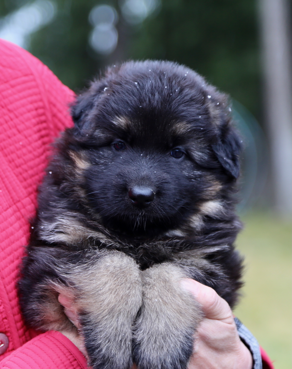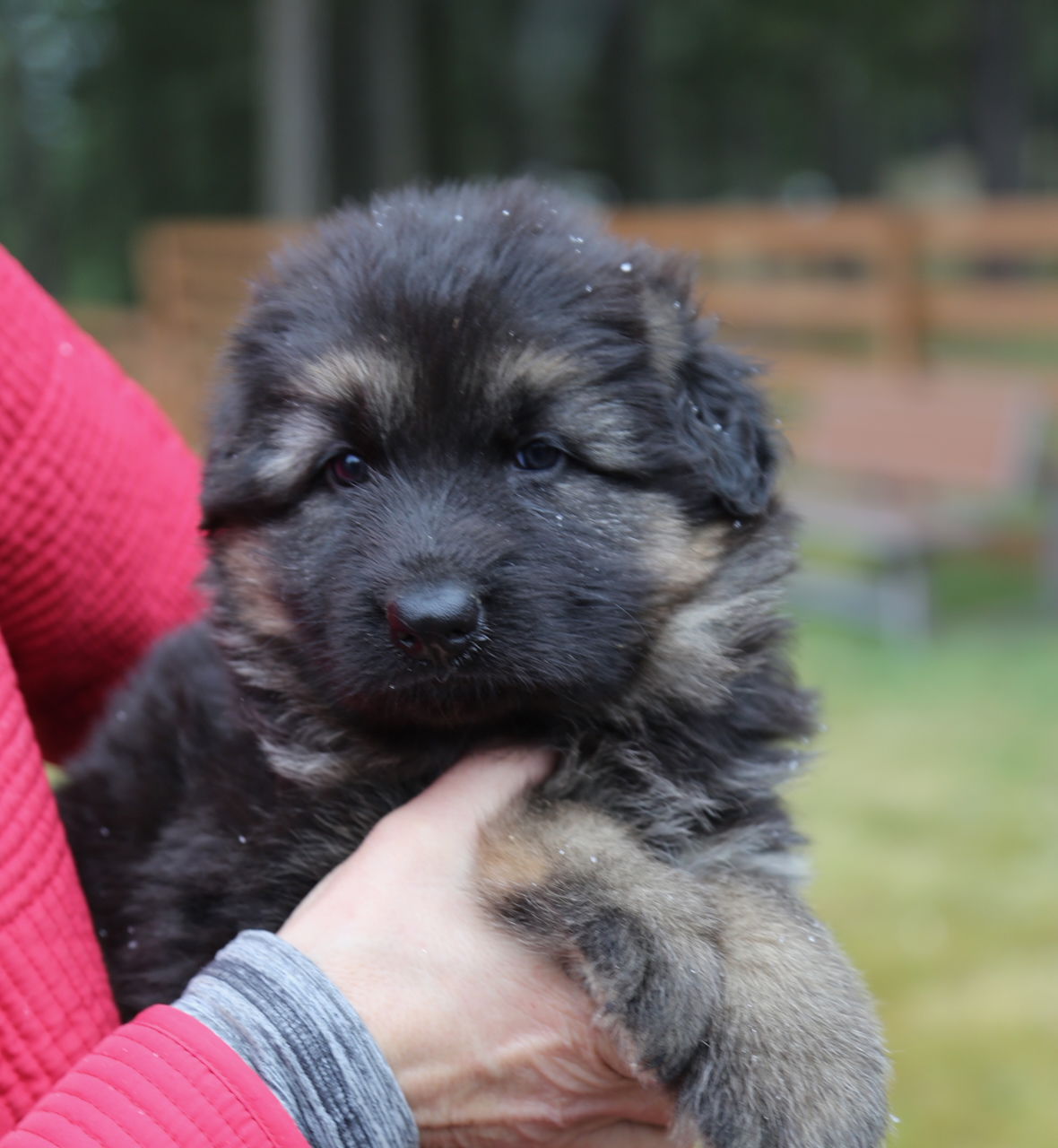 Black and Red long coated female German Shepherd puppy