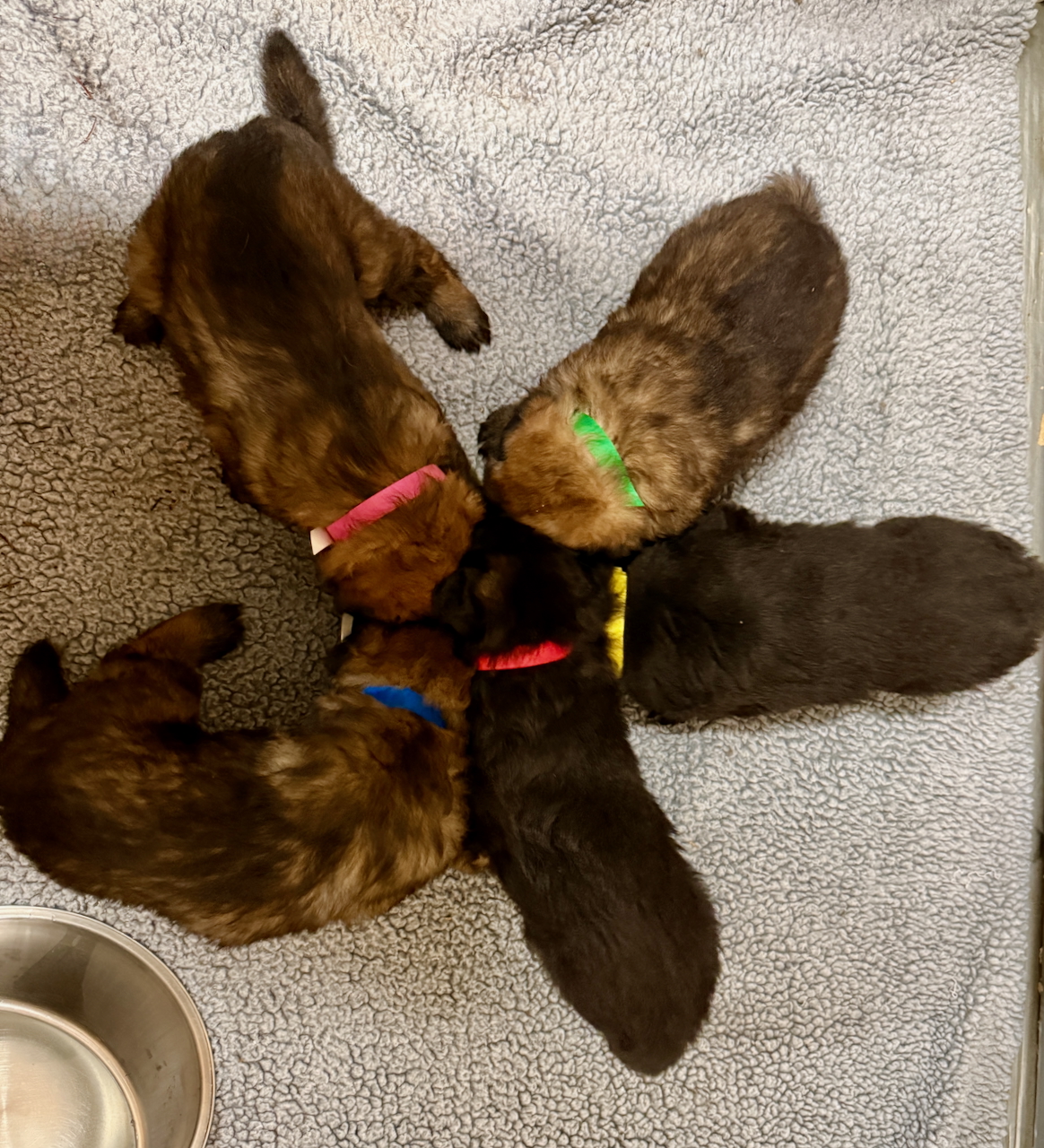 4 Weeks Old: The puppies are eating well. Notice the beautiful mahogany coloring.