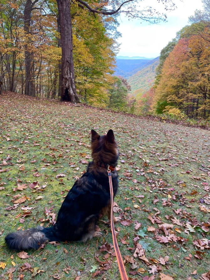 From Christine, "Pictures of my goodest boy Baldur on our camping vacation to West Virginia. Guess who got to hang out at the lookout spot at New River Gorge bridge? We did - because Baldur was bred to have a super stable temperament. I cannot say how many times people comment on 1) he’s so good (or sweet or wow what a friendly GSD) and/or 2) he’s beautiful. Baldur knows he is both things of course. "